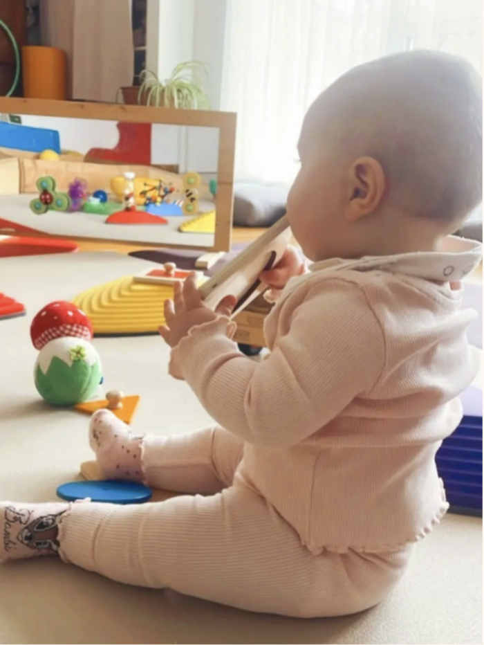 Neben dem freiem Erkunden der Bewegungselemente und der sensorischen Angebote, ist das gemeinsame Reimen und Singen von Bewegungsliedern, Fingerspielen, Kniereitern etc. ein wesentlicher Bestandteil der Gruppe. Die Förderung der Körperwahrnehmung, motorischer sowie sprachlicher Fähigkeiten, der Eltern-Kind-Beziehung und des sozialen Miteinanders stehen dabei im Mittelpunkt.